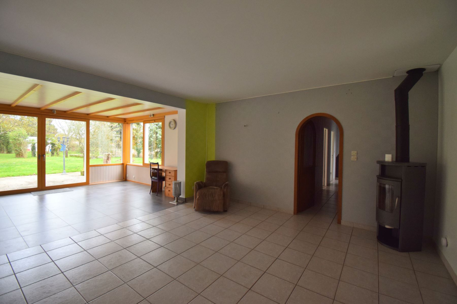 VENDU PAR ANP IMMOBILIER Au calme d'un petit village au coeur de la nature, cette grande maison traditionnelle de plain-pied comprenant un agréable espace à vivre d'environ 60 m² avec poêle à bois, cuisine A/E et une buanderie ; côté nuits : 2 parties distinctes proposant au total 5 chambres, 2 bureaux, une salle de bains, une salle d'eau et 2 WC ; à l'extérieur, une grande terrasse couverte avec partie préau donnant directement sur le jardin d'environ 4000 m² boisé avec dépendances - confort géothermie par le sol - Classe énergie C et classe climat A - Prix de vente 445 170 € dont 4.50% TTC d'honoraire charge acquéreur (Prix 426 000 € hors honoraires).