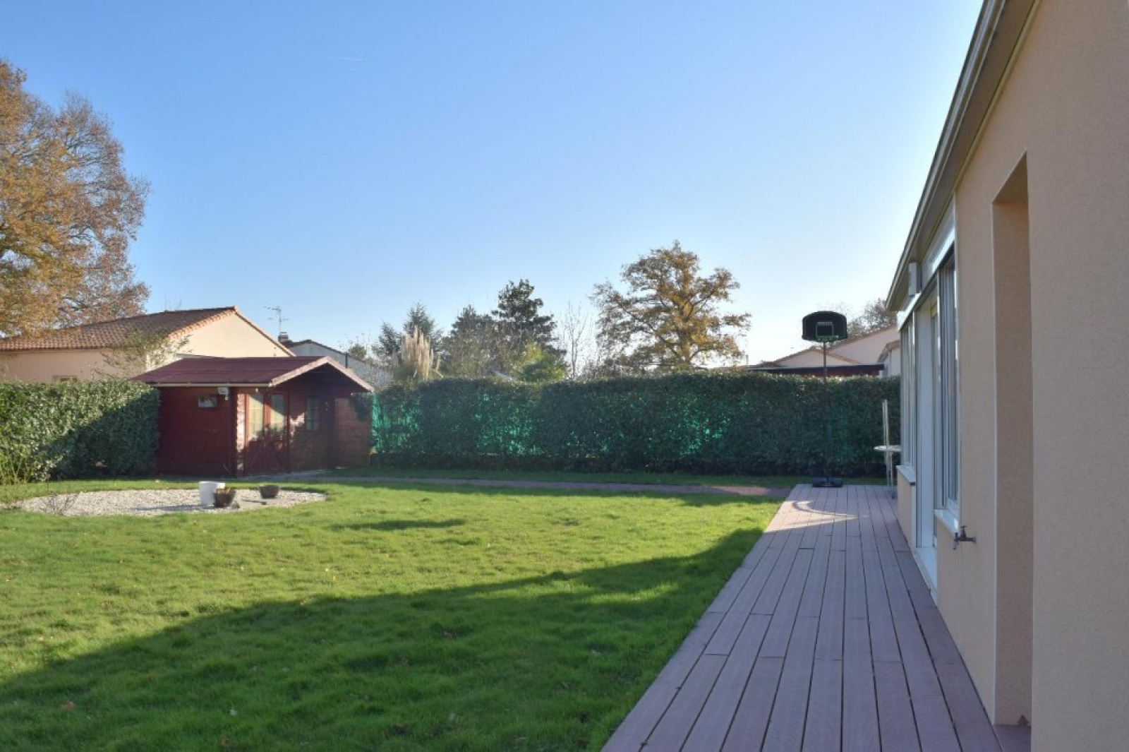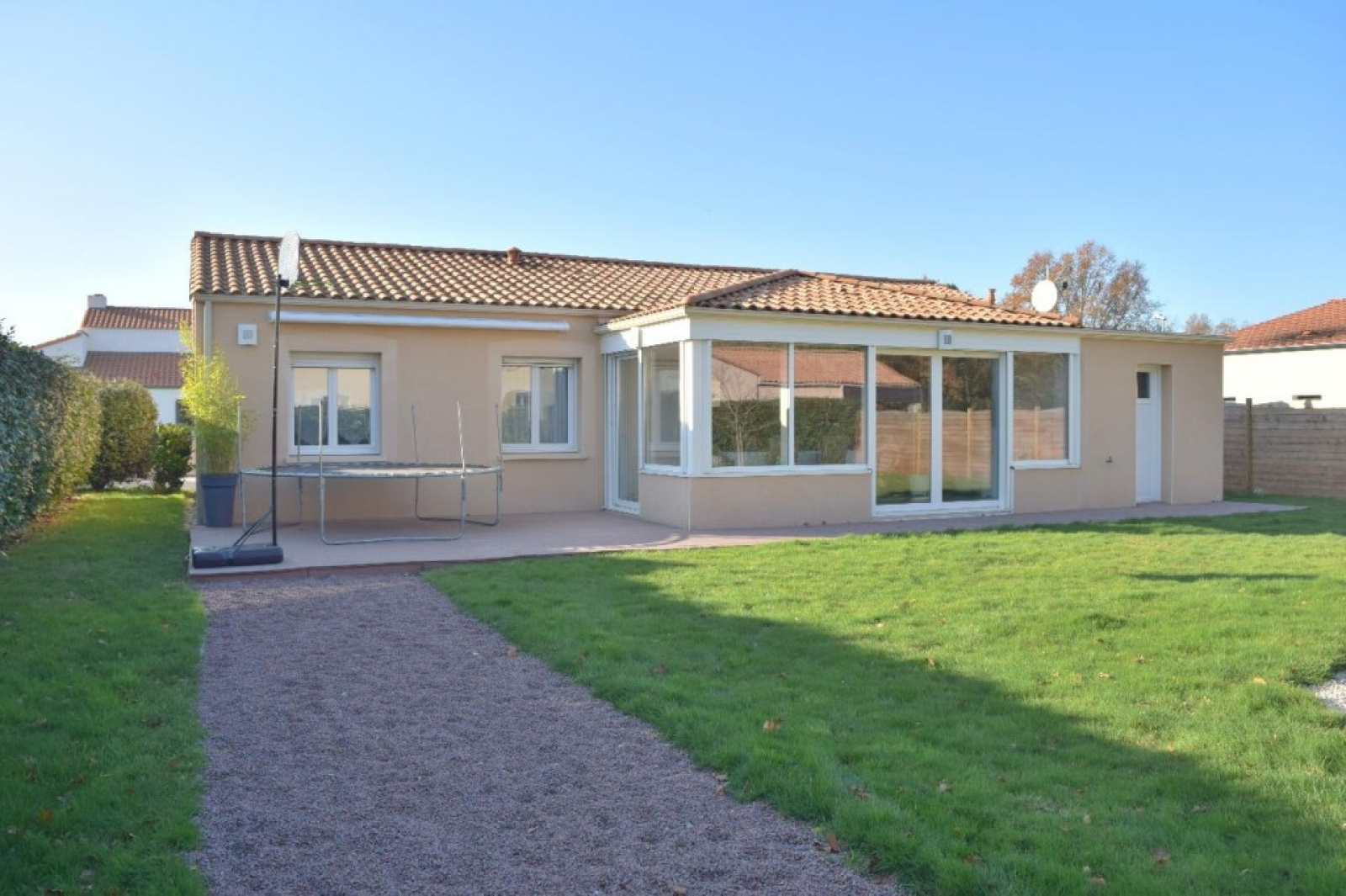 Au calme d'une impasse à 700 mètres des commodités, agréable maison contemporaine d'environ 142 m² habitable et comprenant un espace vie de 63 m² avec cuisine A/E, une partie nuit composée de 3 chambres, salle de bains et WC - indépendamment une suite parentale avec dressing et salle d'eau privative - lingerie et cellier complètent cet ensemble en très bon état sur un terrain clos de 700 m² exposé Est/Ouest avec un chalet bois - Classe énergie C - Prix de vente 268 500 € dont 5.29% TTC d'honoraire charge acquéreur - Réf.AP2138 *****ANP IMMOBILIER GENESTON*****