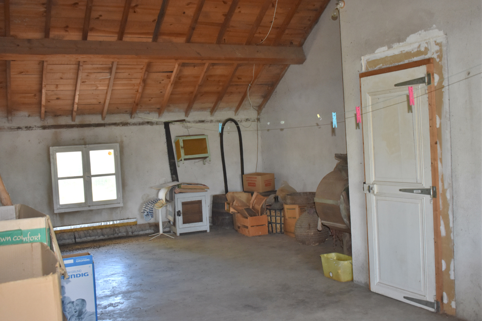 ANP IMMOBILIER AIGREFEUILLE SUR MAINE VOUS PROPOSE EN NOUVEAUTE A 1.5 km du bourg, beau potentiel pour cette maison de village mitoyenne comprenant entrée, séjour, cuisine avec cheminée, salle d'eau, WC séparé, 2 chambres et véranda donnant sur terrain. Grenier total de 80 m², avec belle hauteur sous charpente, composé de 3 pièces: 2 pièces de 16 et 17 m² dont une ancienne chambre, et une grande pièce traversante de 40 m². Dépendances (garage, cave et atelier). Le tout sur un terrain de 4000 m² avec une mare et nombreux arbres fruitiers. Travaux à prévoir (assainissement, ouvertures, électricité...) - Classe énergie en cours - Prix de vente 149 200 € dont 6.57% TTC d'honoraire charge acquéreur (Prix 140 000 € hors honoraires).