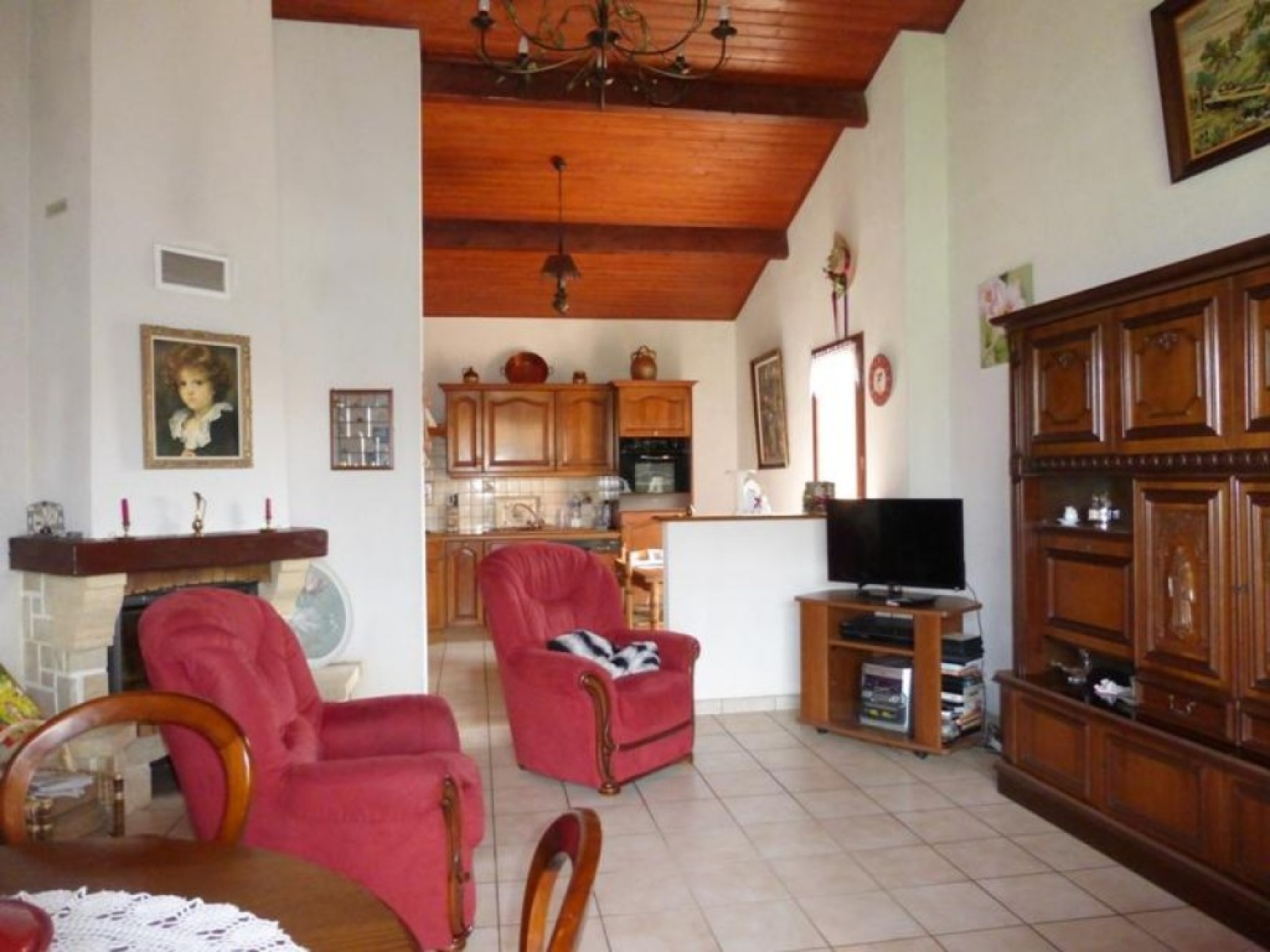 En village, maison traditionnelle de 1995 comprenant une belle pièce de vie de 40 m² (plafond rampant, cheminée et cuisine aménagée ouverte), deux chambres, salle de bains, WC, ainsi qu'une belle pièce attenante avec cheminée d'environ 26 m², l'ensemble sur un beau terrain arboré de 817 m² - Classe énergie en cours - Réf.NP1628 *****ANP IMMOBILIER GENESTON vous offre votre GARANTIE REVENTE*****