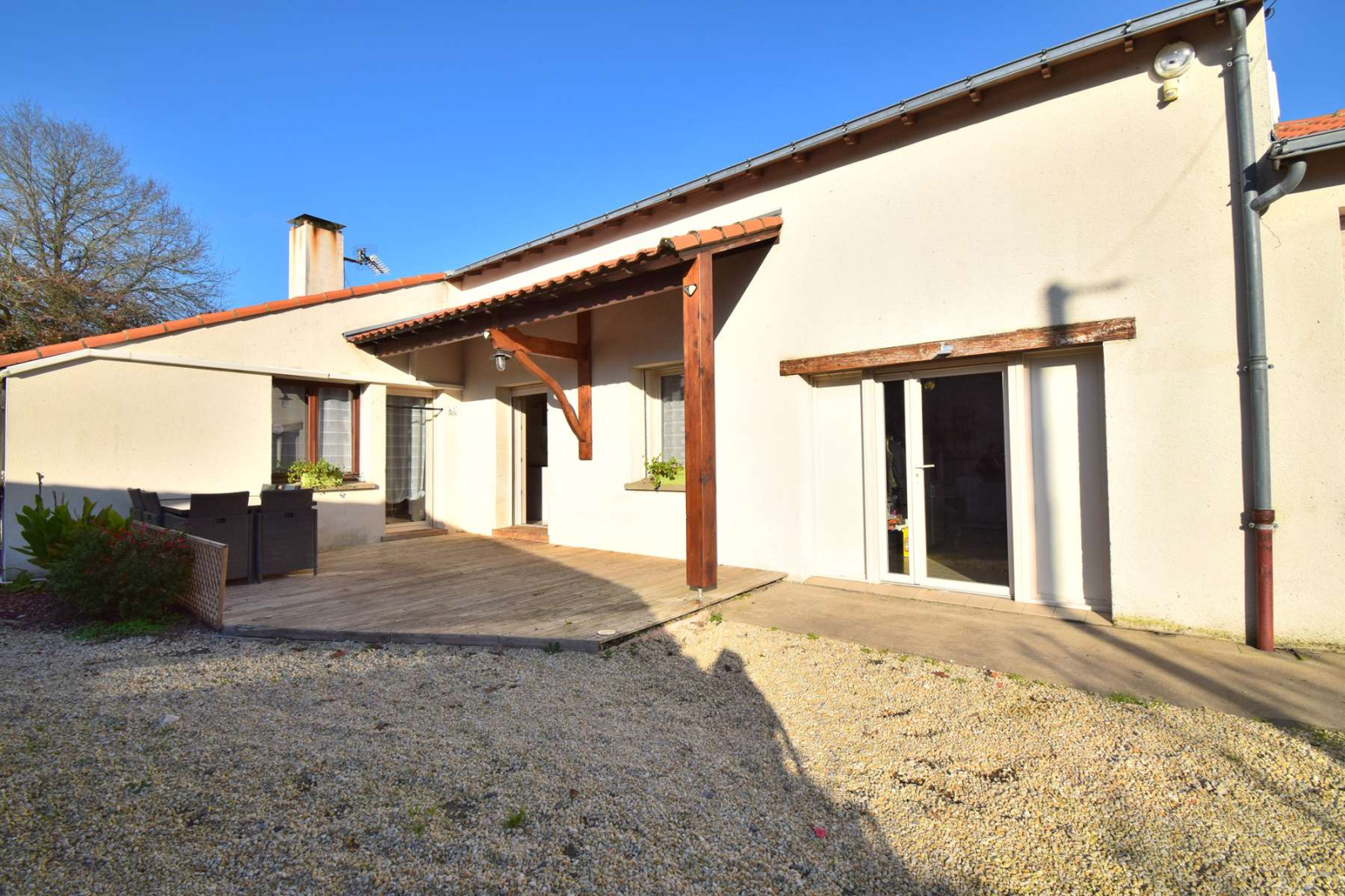 VENDU PAR ANP IMMOBILIER A proximité immédiate des axes routiers desservant Nantes et au calme d'un village, maison rénovée comprenant salon-séjour avec poêle à bois, cuisine entièrement équipée donnant directement sur une terrasse bois exposée plein ouest, 3 chambres, bureau, salle d'eau avec douche italienne et double vasque, grande buanderie avec grenier aménageable et garage. Confort chauffage aérothermie réversible (climatisation) et ballon thermodynamique. Plus de 70 m² d'annexes complètent l'ensemble (atelier, cave...). Classe énergie E - Prix de vente 244 500 € dont 5.39% TTC d'honoraire charge acquéreur (Prix 232 000 € hors honoraires).